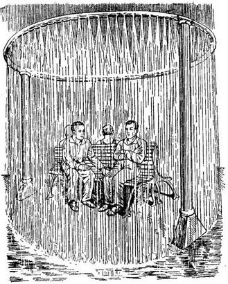Для видалення нагрітого повітря застосовують організовану аерацію; для попередження перегрівання організму влаштовують повітряний душ - потік повітря, що направляється безпосередньо на робітника (рис. 29). Зменшення тепловипромінювання досягається екрануванням тепловипромінюючих поверхонь різними теплоізоляційними матеріалами (азбестом, піносклом), застосуванням водяних завіс (рис. 30).