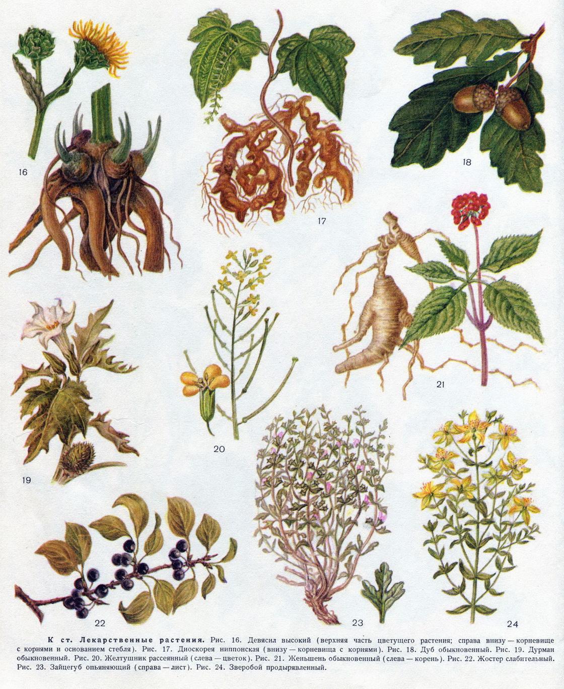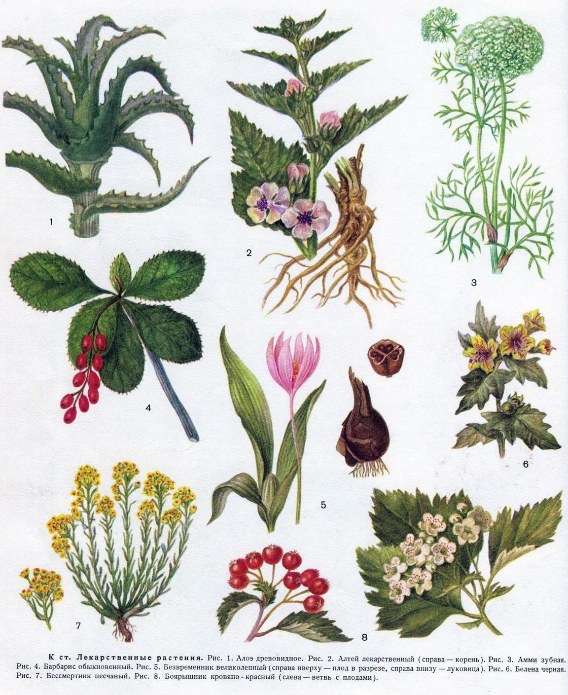 Всі рослини розділені на дві групи: 1) введені у наукову медицину і включені до фармакопеї Радянського Союзу; 2) використовуються в народній медицині.