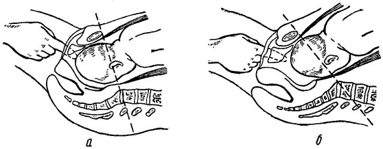 До числа зовнішніх прийомів обмацування головки відноситься дослідження за Пискачеку (рис. 20), що дозволяє визначити голівку, що вступила в таз великим сегментом або знаходиться у порожнині тазу. Цей метод застосовується в тих випадках, коли визначення голівки плоду зовнішніми прийомами важко внаслідок напруги або значної товщини черевної стінки, а також через значне опускання голівки в порожнину тазу. Негативною стороною методу є можливість діагностичної помилки позиціонування головки в тазу при наявності великий головний пухлини (тривалі пологи при давно відійшли навколоплідних водах).