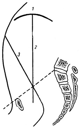 1 - вісь плода; 2 - вісь головки
