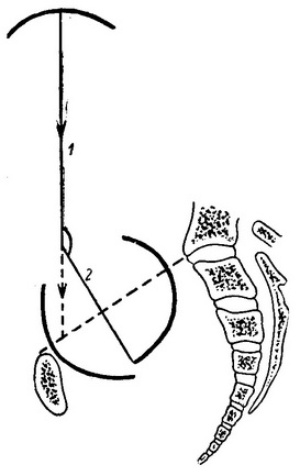 Рис. 76. Асінклітіческое вставляння голівки (задній асінклітізм):