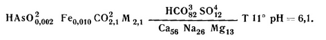 Вода джерела Мархлевського радіоактивна, вміст радону в ній досягає 56 одиниць Махе. Джерело Газующий виділяє значну кількість вільної двоокису вуглецю, яка використовується для відпуску так званих сухих вуглекислих ванн.
