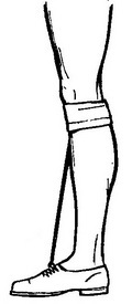 Якщо при ураженні периферичних нервів нижньої кінцівки відзначається звисання стопи, велику увагу звертають на навчання хворого правильній опорі на ногу і ходьбі. Звисаючу стопу обов'язково фіксують еластичною тягою до звичайного взуття або спеціальним ортопедичним черевиком (рис. 46). Перш ніж навчати хворого ходити, треба навчити його правильно стояти, спираючись на хвору ногу, використовуючи додаткову точку опори: спинку стільця, милиці, ціпок; потім навчити ходьбі на місці, ходьби з двома милицями або палицями, з однією палицею і тільки потім-без опори.