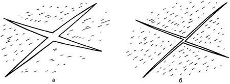 Ріжучі знаряддя в ряді випадків можуть неодноразово пошкоджувати один і той ж ділянку тіла. Якщо різані рани заподіюються власною рукою по одному і тому ж місцю, то на кінцях рани з'являються додаткові надрізи («насічки»), за яким в сукупності зі структурою дна рани можна визначати послідовність їх нанесення. Якщо рани перетинають один одного, то при зведенні країв виявляється уступообразное зміщення поздовжньої осі у тієї рани, яка була нанесена пізніше (рис. 80).