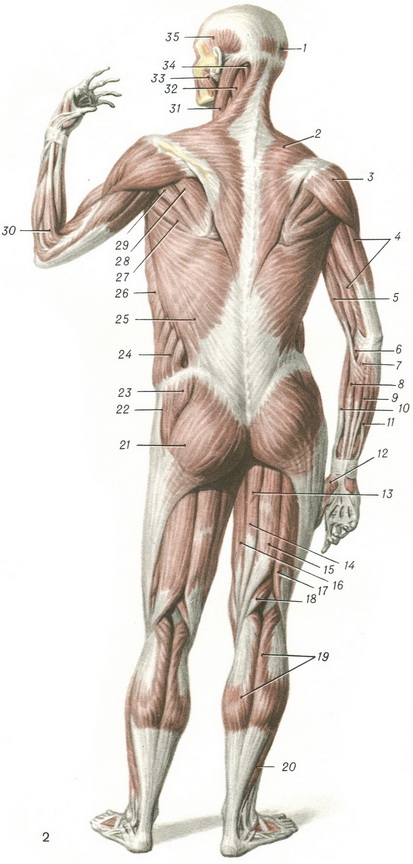 Рис. 2. Поверхневий шар м'язів (ззаду):