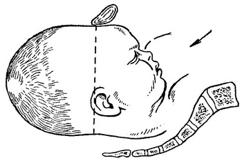 Рис. 80. Передній вид потиличного передлежання.