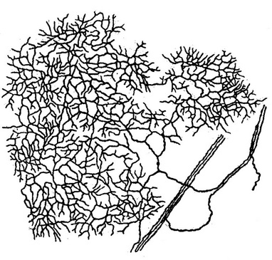 Рис. 94. Чутливий кінцевий апарат слизової шийки матки кролика у вигляді кущика».