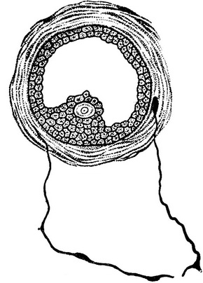 Рис. 96. Кінцеві волокна в дозріваючому фолікулі яєчника собаки.