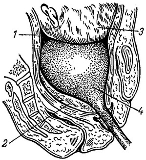 1 - стінка матки, 2 - плацента, 3 - головка плоду, 4 - метрейринтер.