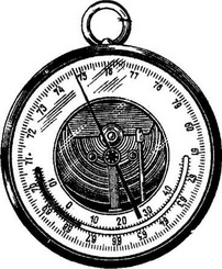 Атмосферний тиск вимірюється барометрами двох видів: ртутними (чашечными і сифонними) і металевими (анероидами). Частіше користуються металевим барометром - анероидом. Барометр-анероїд (рис. 6) складається з безповітряного металевої коробки з пружними хвилеподібними стінками. Коливання атмосферного тиску змінюють обсяг і форму коробки. Ці зміни за допомогою пружини і системи важелів передаються стрілці, яка переміщується по циферблату з поділками від 600 до 790 мм рт. ст. Для отримання порівнянних результатів необхідно показання барометра призвести до постійної температурі (0°) з допомогою спеціальних таблиць. При необхідності безперервних спостережень за коливаннями атмосферного тиску користуються самопишущим приладом - барографом.