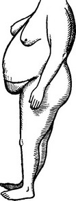 ![]() Рис. 15. Лінія розрізу при висіченні шкірно-жирового фартуха черевної стінки. |