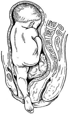 Рис. 73. Підслизова фіброміома матки - перешкода для пологів.