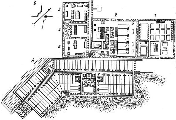 Рис. 2. Приклади вітрозахисною забудови мікрорайонів населених місць Крайньої Півночі: А - мікрорайон на 4400 жителів; Б - мікрорайон на 2100 жителів.