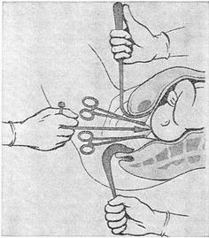 ![]() Рис. 1. Перфорація передлежачої голівки по Феноменову. |