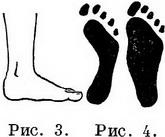 ![]() Рис. 3. Зовнішній вигляд плоскої стопи. Рис. 4. Відбитки стопи нормальної (ліворуч) і плоскої (праворуч).  |