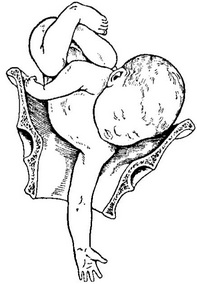 Цього виключення при виробництві повороту слід дотримуватися особливо в тих випадках косого положення, коли внизу, в області здухвинної западини, знаходиться голівка плоду.