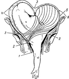 Після такого розриву плодового міхура умови різко змінюються: розкриту шийку тепер ніщо не утримує в розтягнутому стані - вона спадается, звисаючи у піхву у вигляді в'ялого мішка (рис. 4).