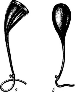 ![]() Рис. 8. Балони, які використовуються для операцій кольпейриза і мейтейриза. а - метрейринтер Дюрсена; б - метрейринтер Брауна. |