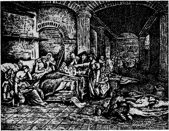 На рис. 106 можна бачити умови лікарняного закладу того часу.