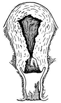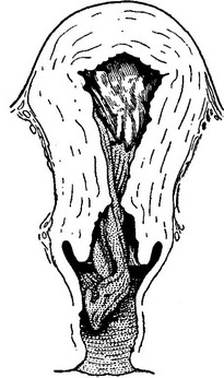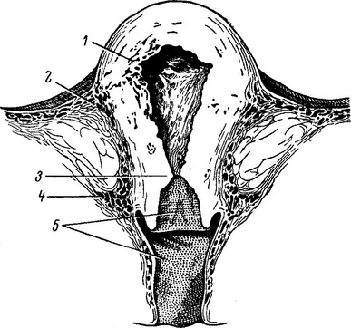 Рис. 108. Проникнення інфекції з піхви в порожнину матки в перший день після пологів.