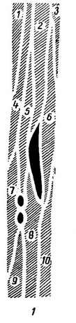 ![]() ![]() Рис. 114. Схематичне зображення м'язових шарів матки. 1 - м'язовий шар розтягнутої вагітної матки; 2 - та ж група м'язових пластів у стані ретракций опорожненной матки. |