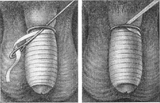 ![]() Рис. 2. Звільнення статевого члена від обмежуючого кільця. |