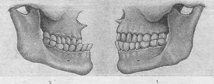 У фізіологічному прикусі розрізняють кілька різновидів. Ортогнатия - зуби верхньої щелепи перекривають зуби нижньої щелепи (рис. 1, 2). Прогения (фізіологічна) - фронтальні зуби нижньої щелепи перекривають фронтальні зуби верхньої щелепи (рис. 1, 2).