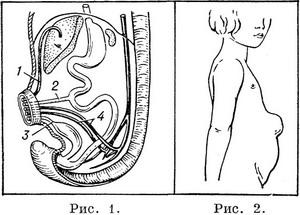 Пупкова область - частина черевної стінки, обмежена горизонтальними лініями, зверху з'єднують кінці X ребер, знизу передньо-верхні ості клубових кісток, з боків вертикальними лініями, що проходять через середину пупартових зв'язок. У цій області розташовано пупок - втягнутий рубець, який утворюється на місці відпадання пуповини. Пупок прикриває пупкове кільце - отвір в апоневрозі білої лінії живота, через яке кровоносні судини, жовтковий і сечової протоки проникають у черевну порожнину плода (рис. 1). Після відпадання пуповини отвір закривається; протоки, що проходять у ньому, запустевают. Шкіра пупка тонка, позбавлена підшкірного жирового шару, спаяна з малоэластичной і легко розтяжної рубцевою тканиною пупкового кільця, власна фасція якого нерідко відсутня, що робить його слабким ділянкою черевної стінки і місцем виходу гриж (рис. 2).