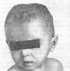 ![]() Рис. 1. Квадратна форма черепа при рахіті у дитини 1 року. |