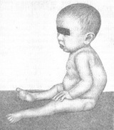 ![]() Рис. 4. Викривлення хребта (кіфоз) при рахіті. |