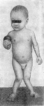 ![]() Рис. 6. Х-подібне викривлення ніг при рахіті (genu valgum). |