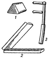 ![]() Пристосування для редресацій: 1 - клин; 2 - дошки з шарніром; 3 - важіль Томаса. |