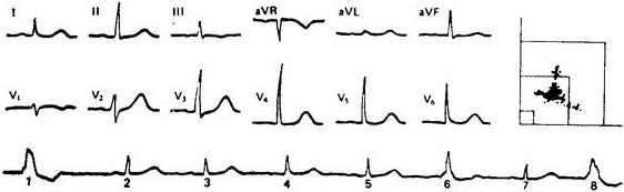 Боксер, майстер спорту Ст., переніс нокаут, після якого мало місце зловживання алкоголем. З'явилася миготлива аритмія. Ритм відновився після 2 тижні відпочинку. Миготлива аритмія більше не з'являлася.