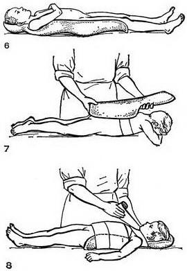 ![]() Рис. 6. Хворий в гіпсовій ліжечку. Рис. 7. Зняття гіпсової ліжечка. Рис. 8. Одягання гіпсової ліжечка. |