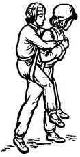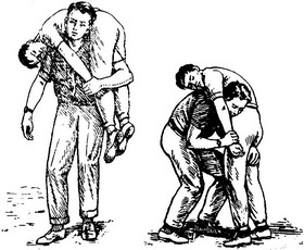 ![]() Рис. 31. Перенесення потерпілого на плечі. |