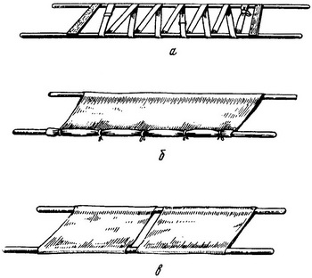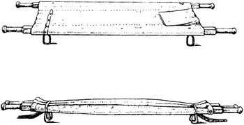 Рис. 33. Санітарні носилки в розгорнутому і згорнутому вигляді.