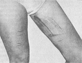 ![]() Рис. 15. Подряпини, завдані голкою (саме ушкодження). |