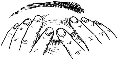 Рис. 49. Пальпаторне дослідження внутрішньоочного тиску (Т).