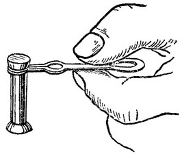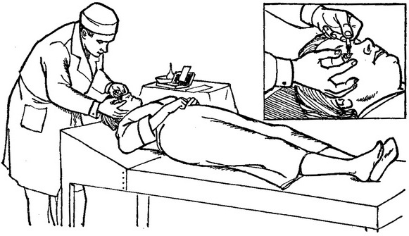 Рис. 52. Вимірювання внутрішньоочного тиску тонометром Маклакова.
