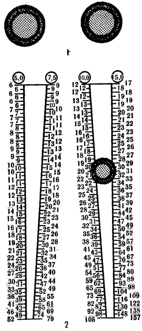 Рис. 53. Відбитки при тонометрії та їх вимірювання.