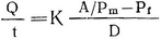 де Q/t кількість кисню, що надходить до плоду через плаценту за одиницю часу; К - коефіцієнт проникності мембрани між материнським кровотоком і капілярної мережею для плода O2; А - ефективна площа газообміну; Pm-Pf - різниця парціальних тисків O2 в материнському і плодовому кровообігу; D - середня товщина мембрани, що розділяє капілярний кровообіг матері і плоду.