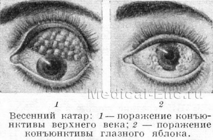 Весняний катар - хронічне захворювання сполучної оболонки (кон'юнктиви) очей. Спостерігається весняний катар в дитячому віці, частіше у хлопчиків в період статевого дозрівання зазвичай проходить. Причина захворювання не з'ясована. У розвитку весняного катару, можливо, відіграють роль дію ультрафіолетових променів, фактори алергії. Свою назву захворювання отримало у зв'язку з спостерігається періодичністю розвитку процесу - загостренням його навесні і влітку, із затиханням восени і взимку.
