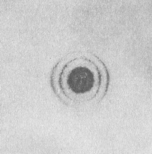 ![]() Рис. 64. Осаднение на шкірі навколо вхідний рани від впливу предпулевого повітря (кільце повітряного осаднения). |