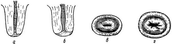 Рис. 26. Шийка матки до кінця восьмого місяця вагітності у родили (о) і у народжували (б) жінки.