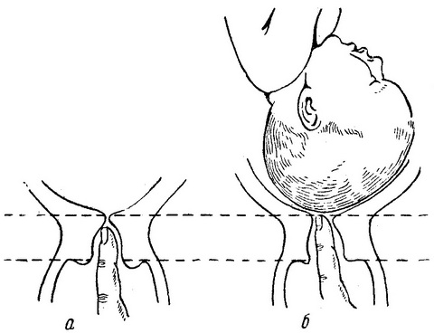 Мірилом відкриття зіва є кількість Поперечних пальців, що поміщуються в його просвіті. Так як у досліджують пальці можуть бути різної величини, то за одиницю виміру іноді приймають поперечник пальця самої породіллі - величина для неї постійна. Не слід забувати, що у. повторнородящих зазвичай вже до початку родового акту шийковий канал вільно пропускає палець.