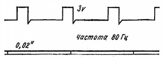 У зв'язку з відсутністю апаратури С. Н. Давидовим і в. І. Оганджанянцем були сконструйовані ламповий і напівпровідниковий генератори, що отримали значне поширення. В. М. Стругаций (1967) для електростимуляції використовував апарат ІСЕ-01 Київського заводу ЕМА з додатковою градуювання шкали потенціометра за шкалою імпульсного вольтметра від 1 до 10 Ст. Для електростимуляції шийки матки застосовується імпульсний постійний струм з прямокутною формою імпульсів при тривалості імпульсу 2 мс, частотою проходження імпульсів 70-80 Гц і напрузі 3-5 (рис. 31).