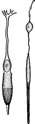 ![]() Паличка (праворуч) і колбочка (ліворуч) сітчастої оболонки  |