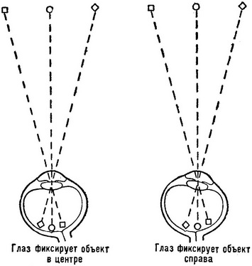 ![]() Рис. 3.2. Ретинальные наслідки зміни точки фіксації. |